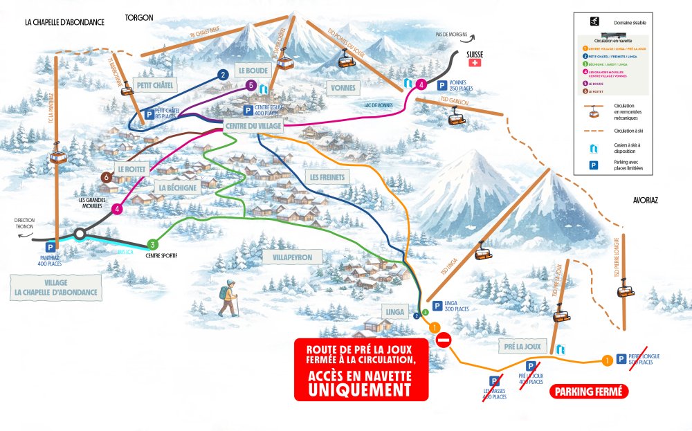 🎿 Accès à Pré-la-Joux : uniquement en navette ou à ski