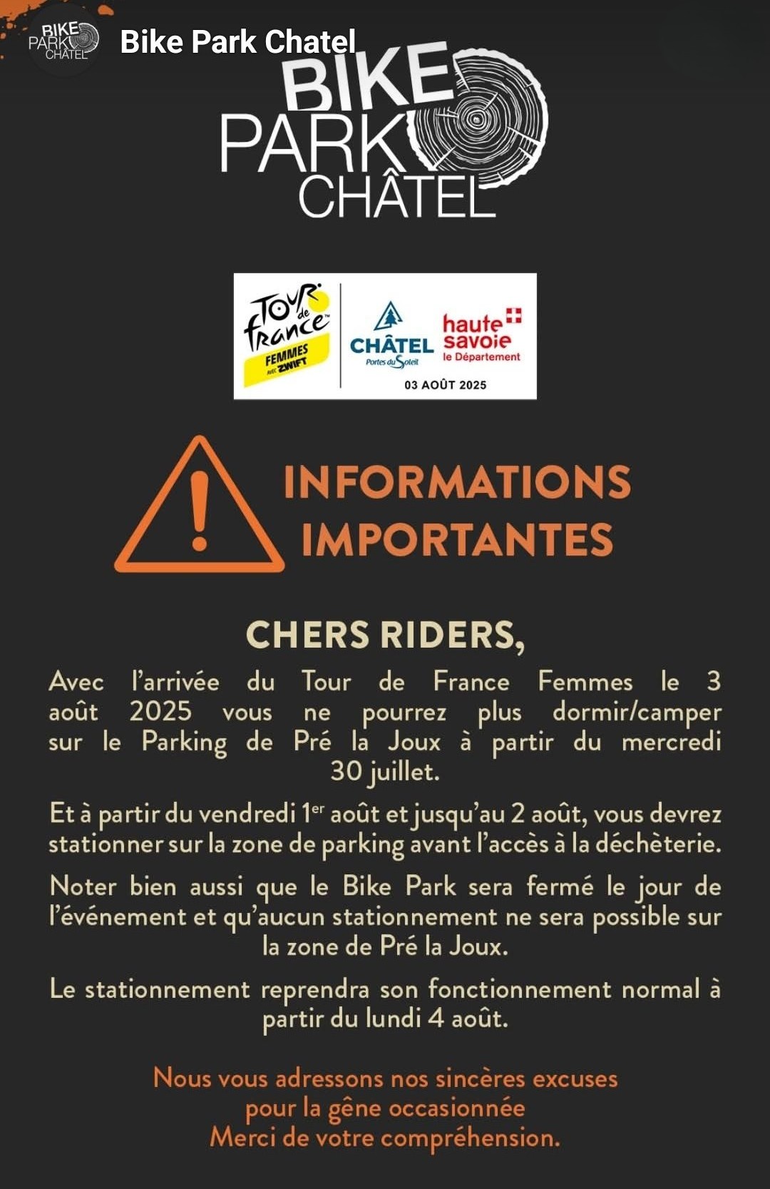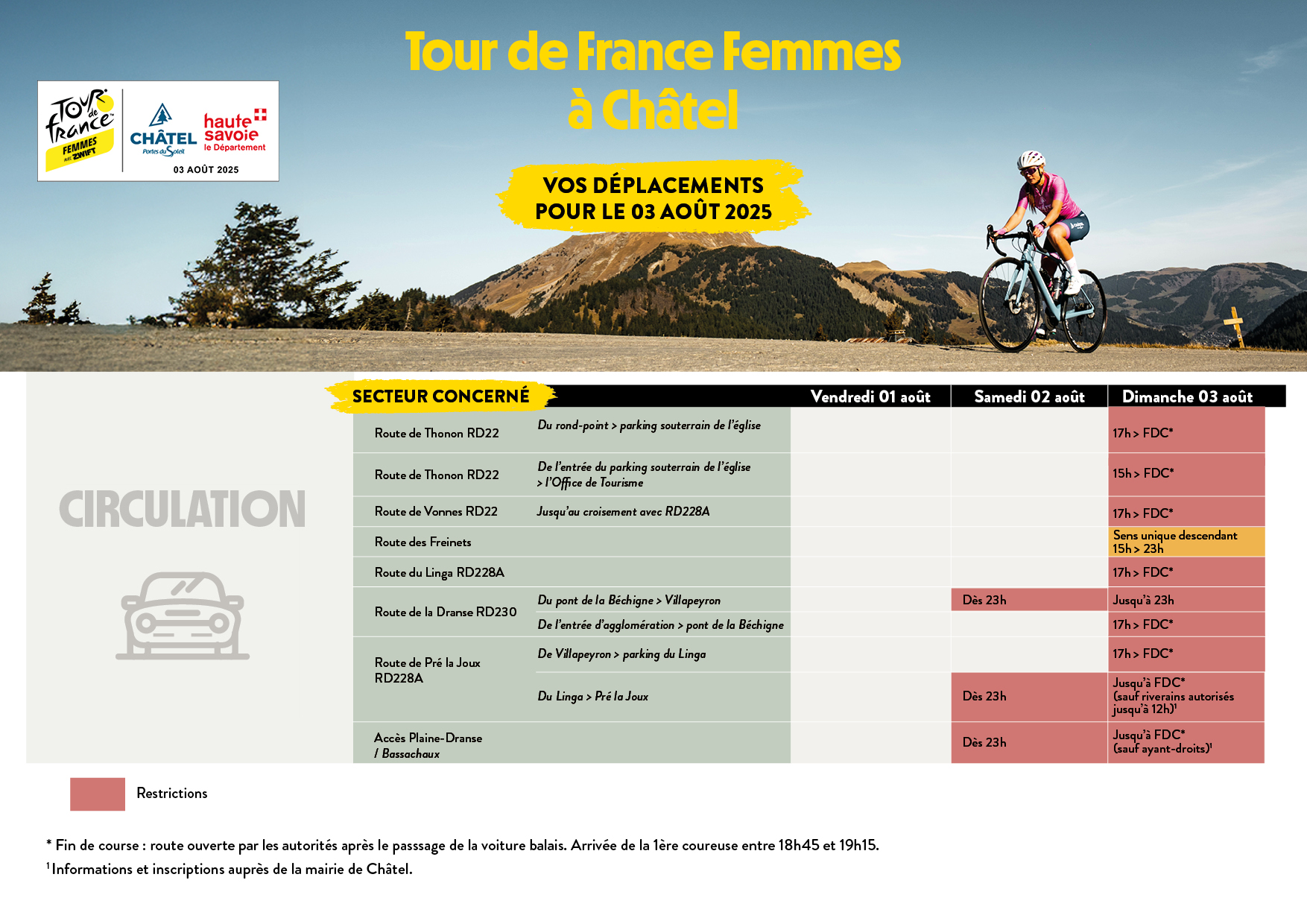 - Le communiqué concernant la journée d’arrivée du Tour de France femmes, le dimanche 3 août 2025