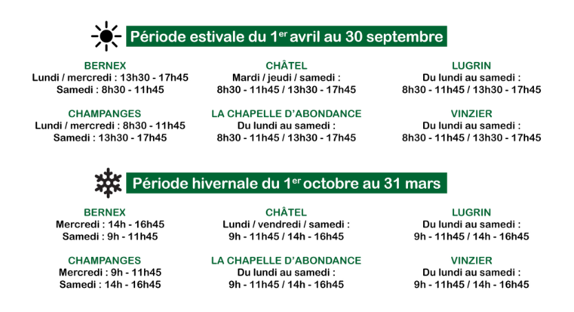 👉 Ces horaires sont applicables du 1er octobre au 31 mars.